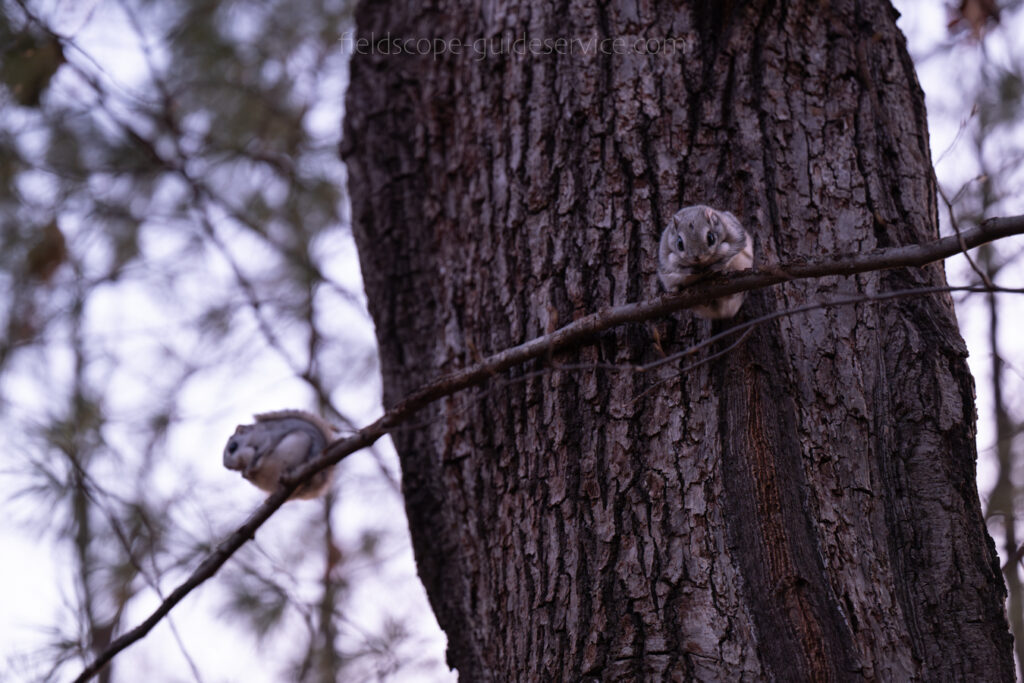 Just as I expected, the flying squirrels climbed onto the branch. There are only three of them for now, but once it gets colder, that number will likely increase.